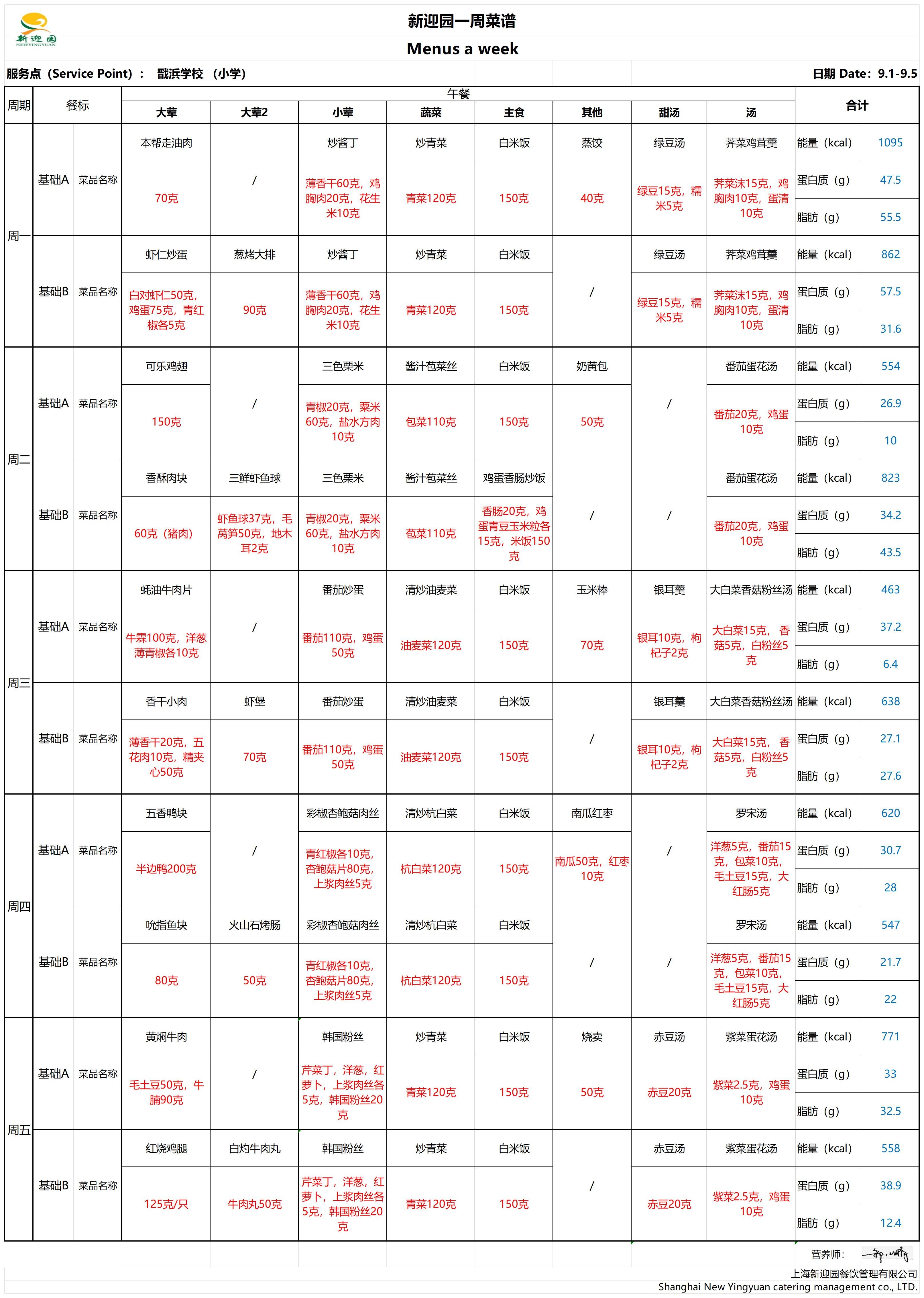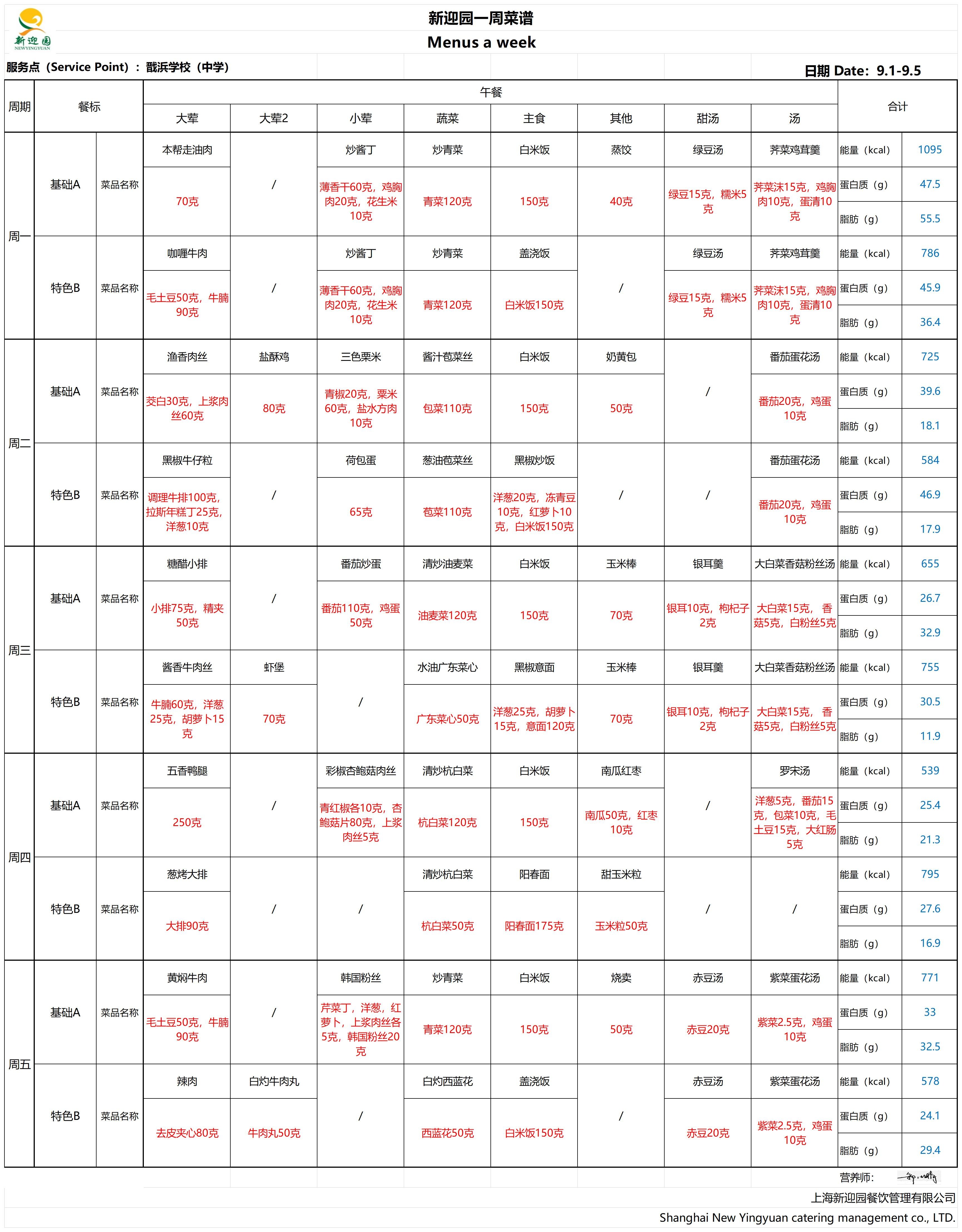 2025学年第一学期第1周学生营养午餐