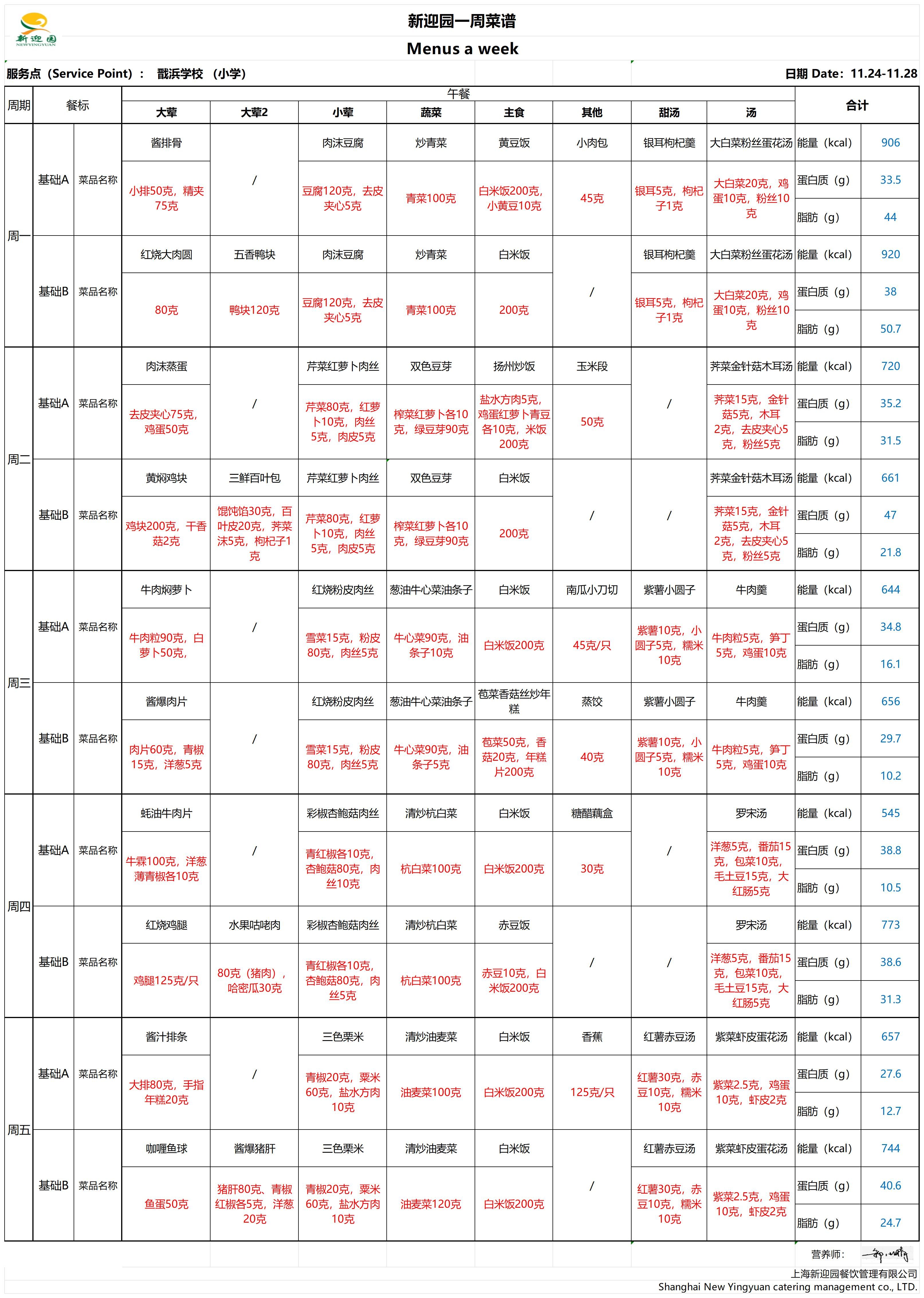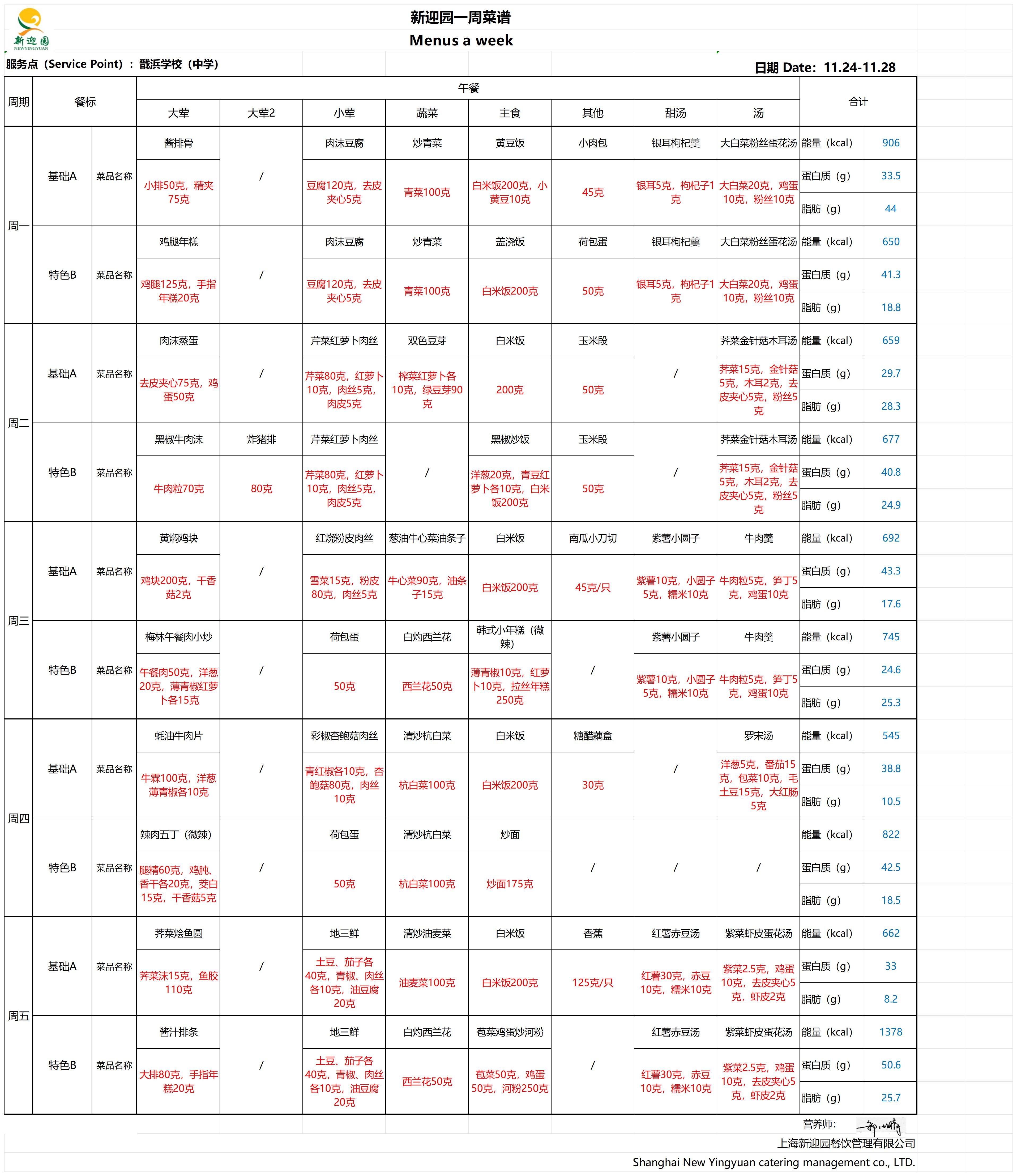 2025学年第一学期第13周学生营养午餐