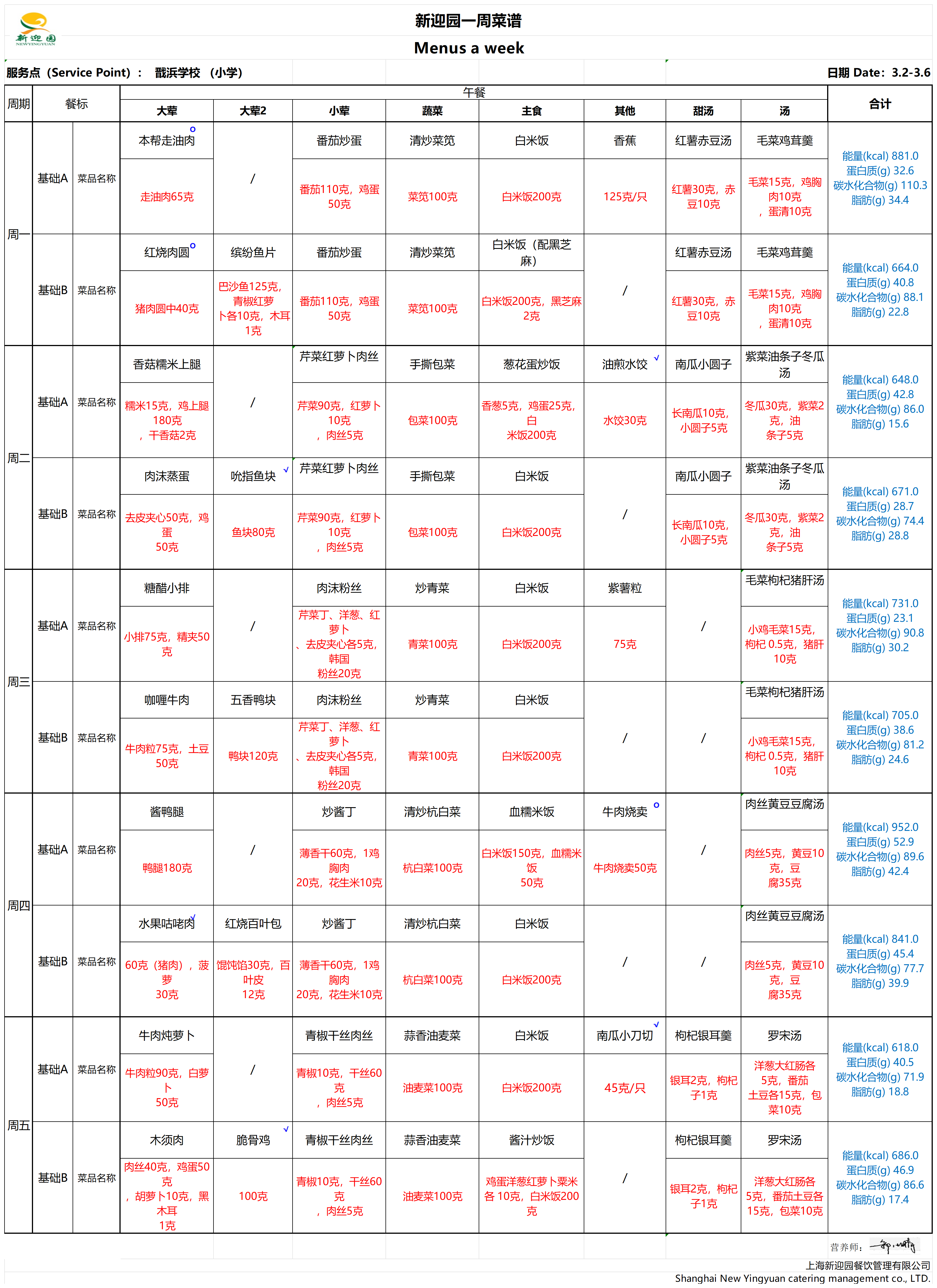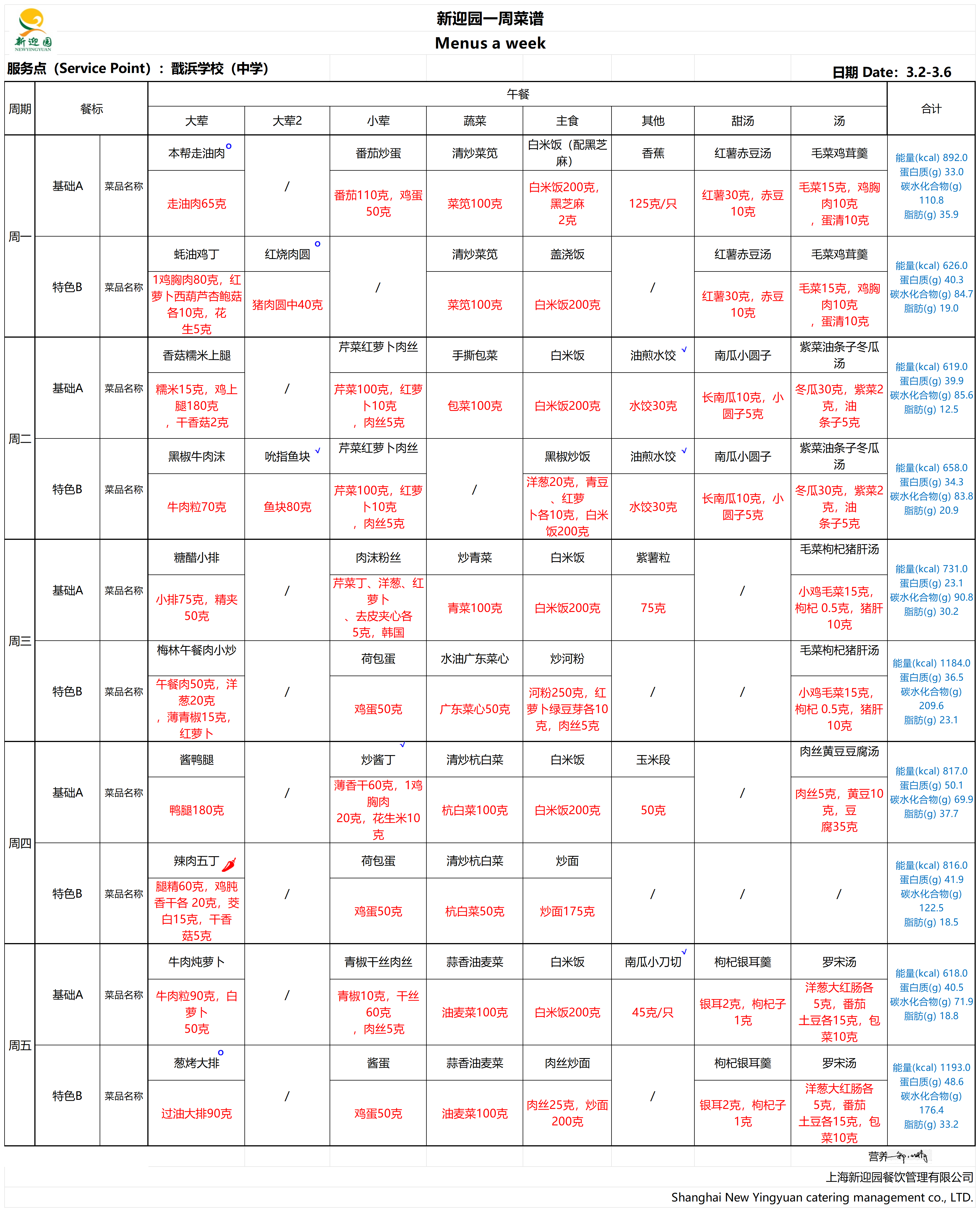 2025学年第二学期第1周学生营养午餐