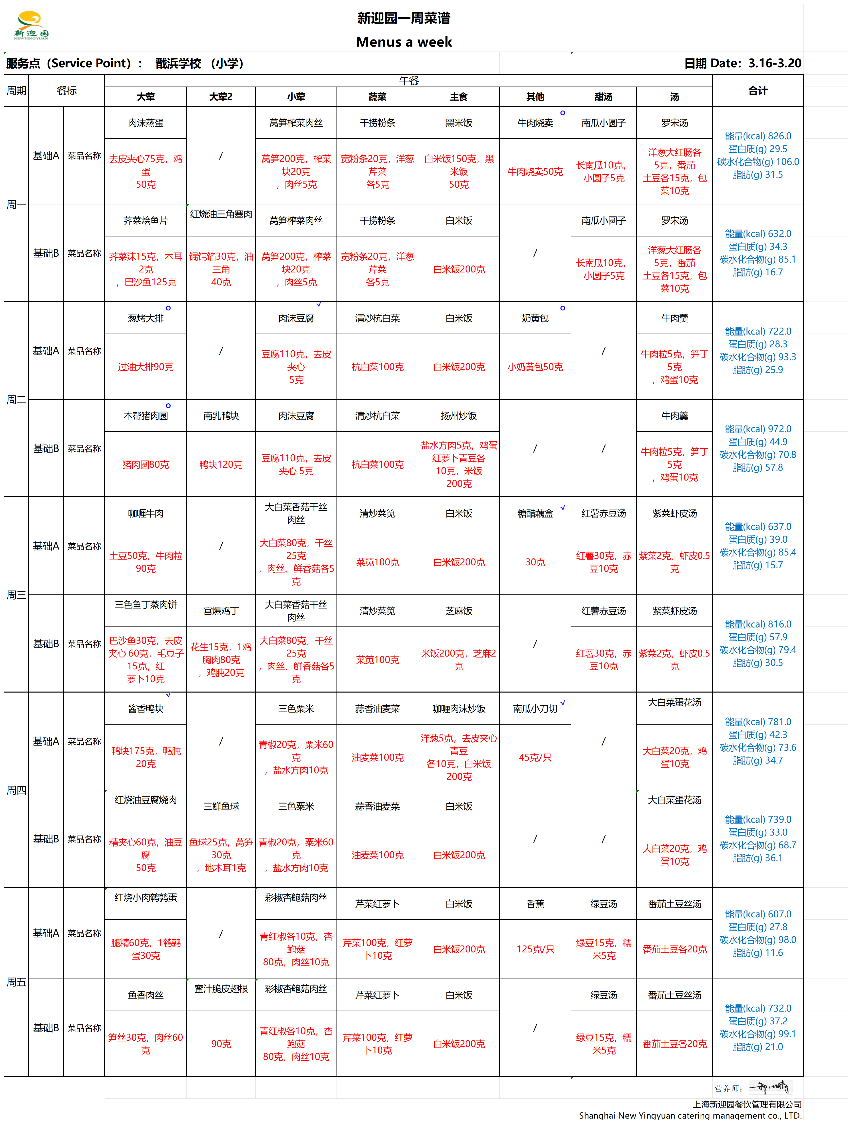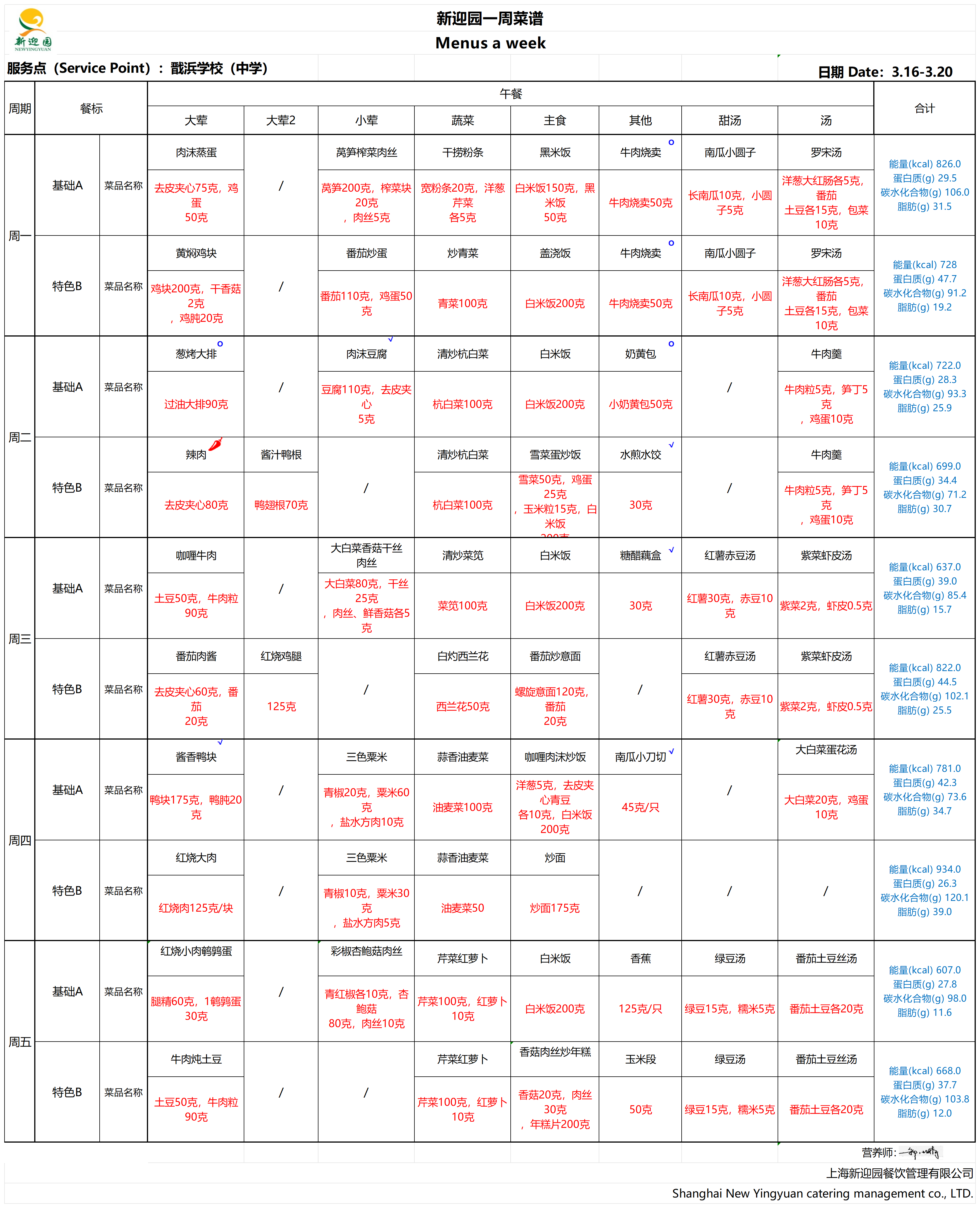 2025学年第二学期第3周学生营养午餐